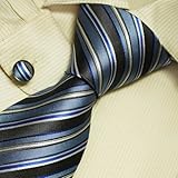 Blue Grey Striped Ties for Men Stripes Xmas Gift Mens Style Silk Ties Cufflinks Set 5261